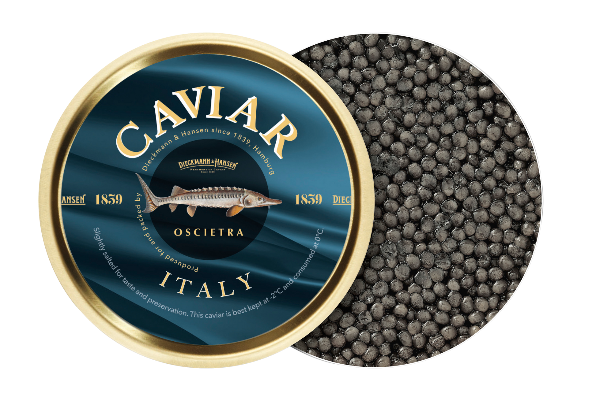 Durch seine Salz-Preparation wird der italienische Oscietra Caviar zu unserer kräftigsten, aber nicht salzigsten Variante. Er eignet sich perfekt, um Speisen zu ergänzen, oder ist ideal für Liebhaber von volumenreichem Caviar.